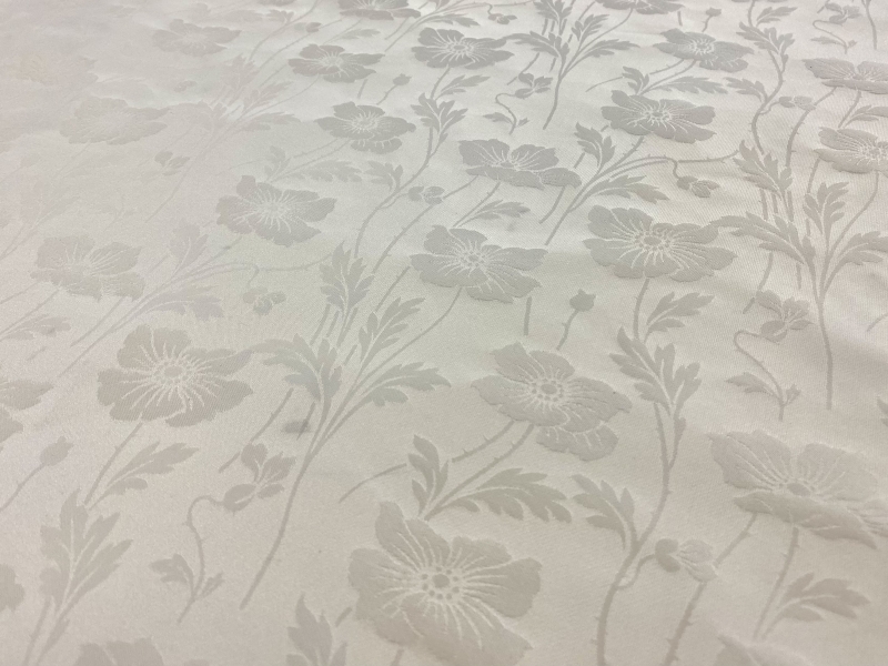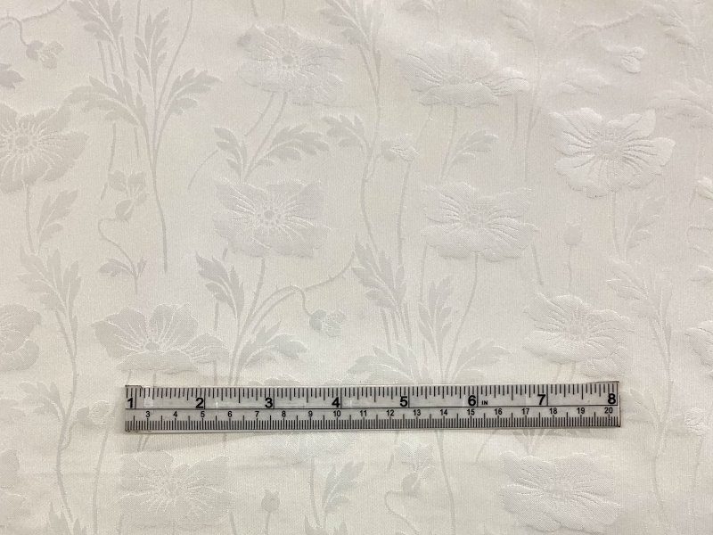 100% Silk Brocade with Floral Patterns in Silk White
