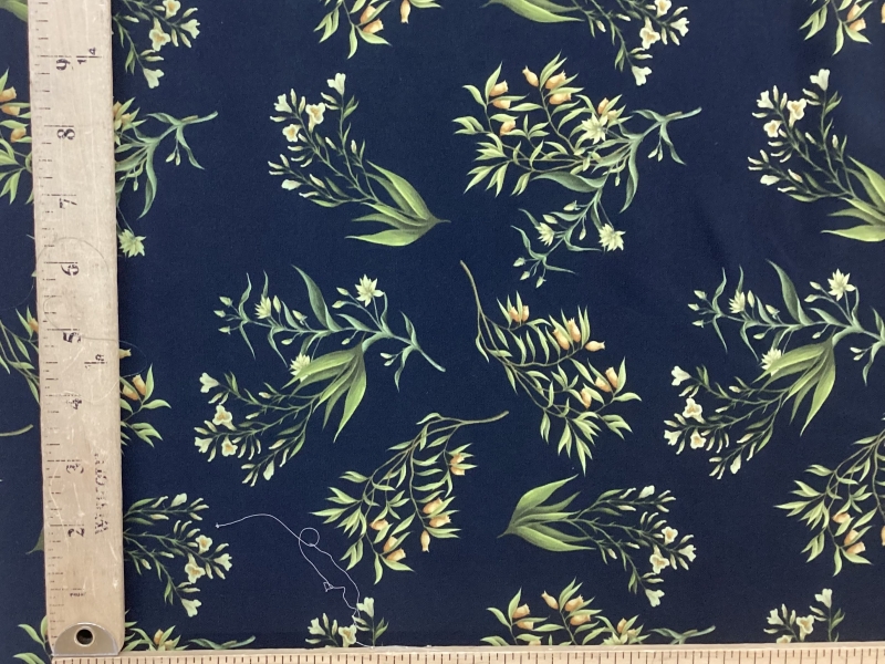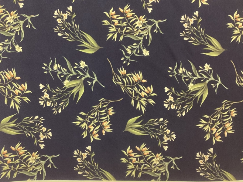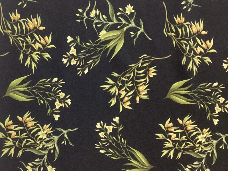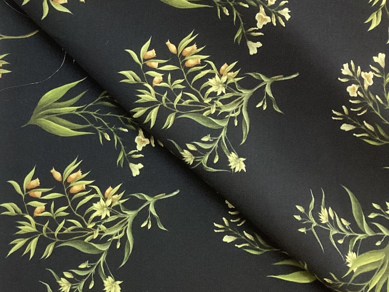 Made In Italy 100% Silk Crepe De Chine Floral Printed In Green/Yellow on Black Ground