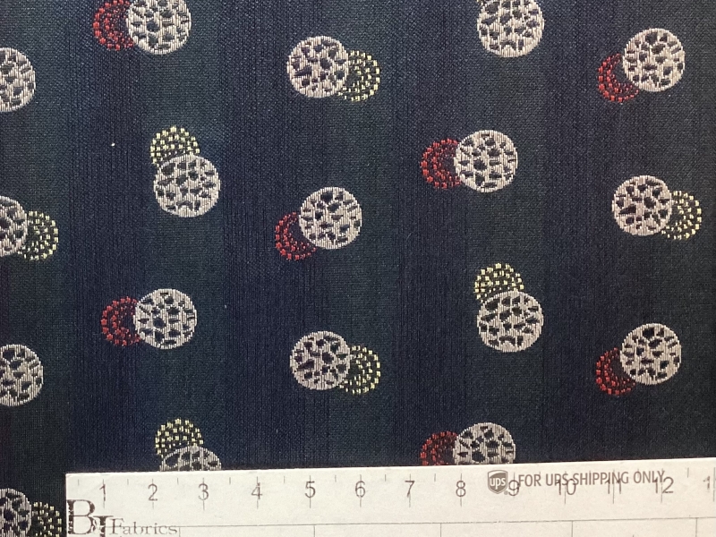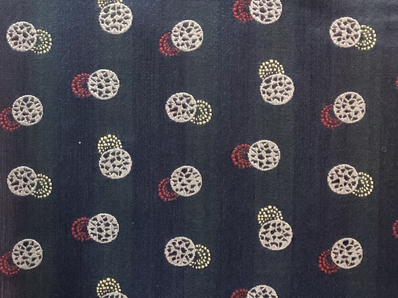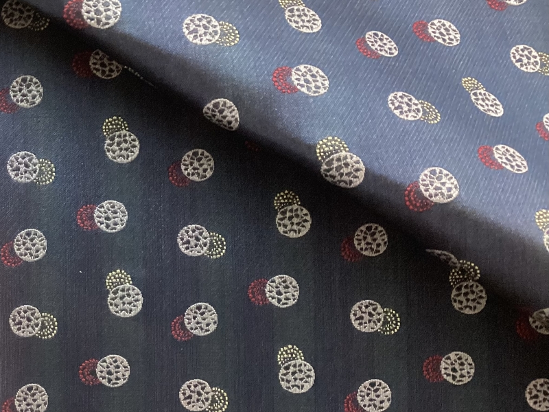 Made in Italy 100% Silk Tie Brocade Navy with Red/Silver/Gold Circles