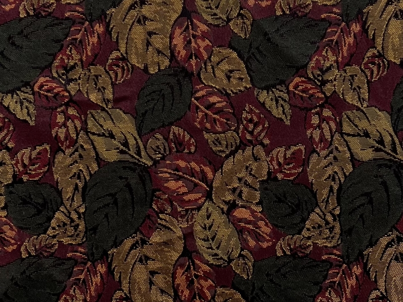 Made in Italy 100% Silk Tie Brocade with Wine/Hunter Leaf Design