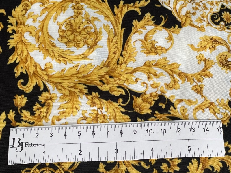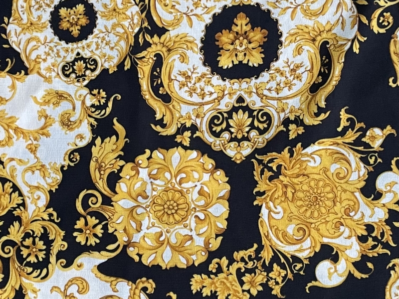 Made in Italy 100% Viscose Challis Baroque Print in Black/Gold
