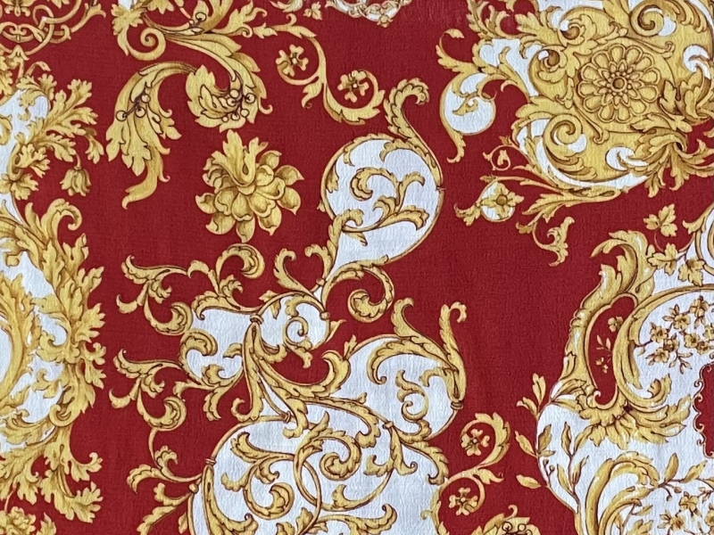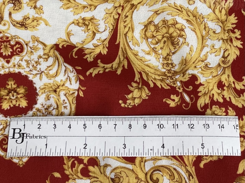 Made in Italy 100% Viscose Challis Baroque Print in Rust/Gold