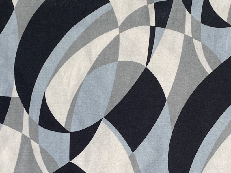 Made in Italy 100% Viscose Challis Deco Print in Gray Multi
