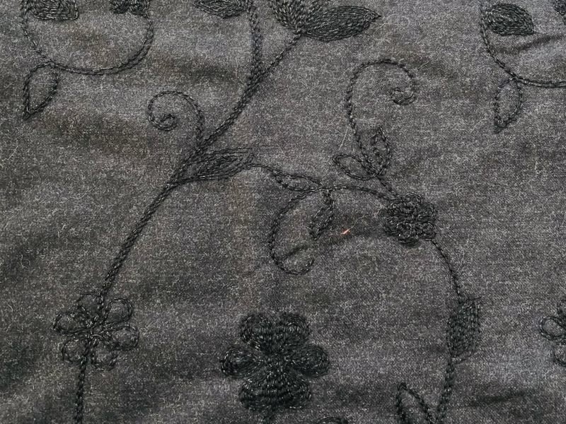 Made in Italy 100% Wool Flannel with Floral Embroidery