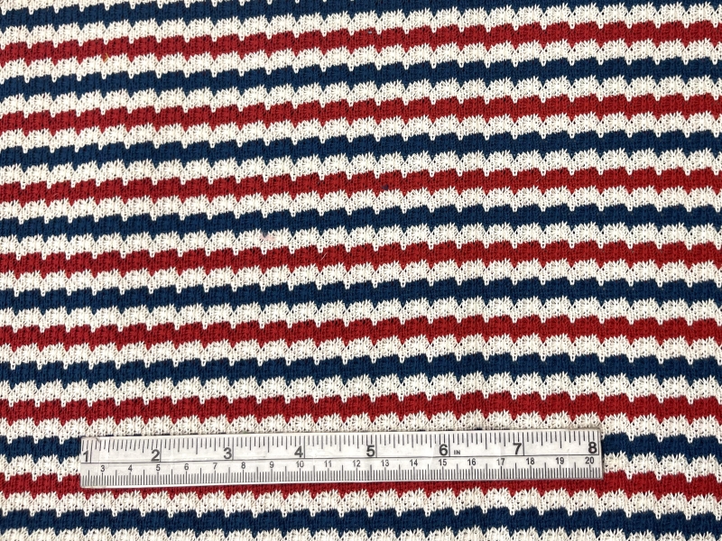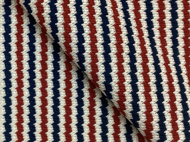 Made in Italy Cotton Crocheted Jersey, Fabric in Ecru, White & Navy