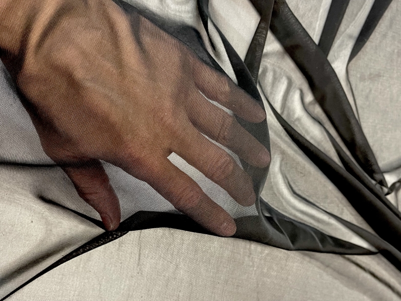 This matte jersey is ultralight and characterized by "dry" hand, it drapes with excessive ease and fluidity, with a nice stretch in the weft direction. This "tissue" jersey is perfect for cover-ups, see-thru tops, and more.
