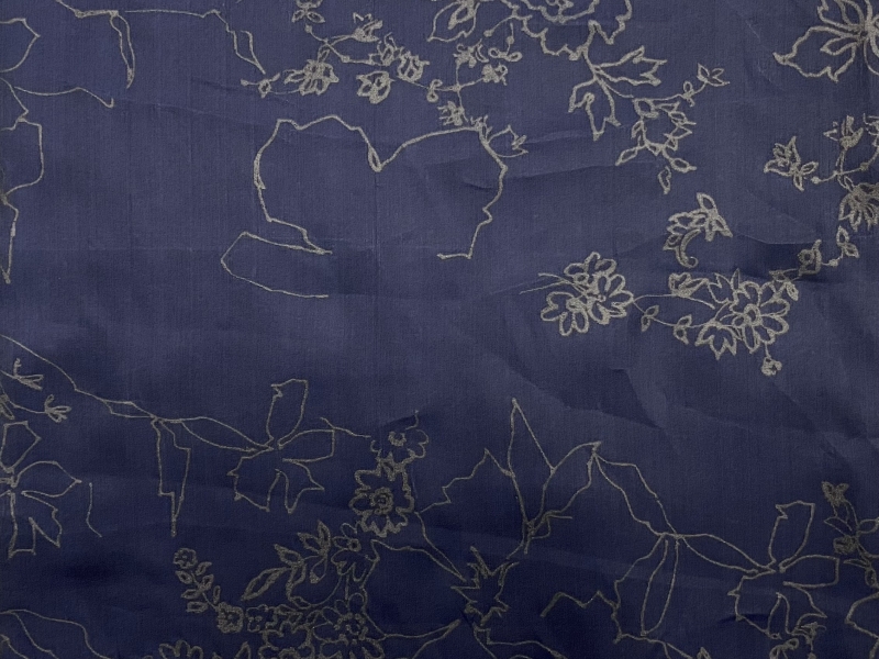 Navy Blue Silk Satin Organza With Heat Pressed Floral Patterns