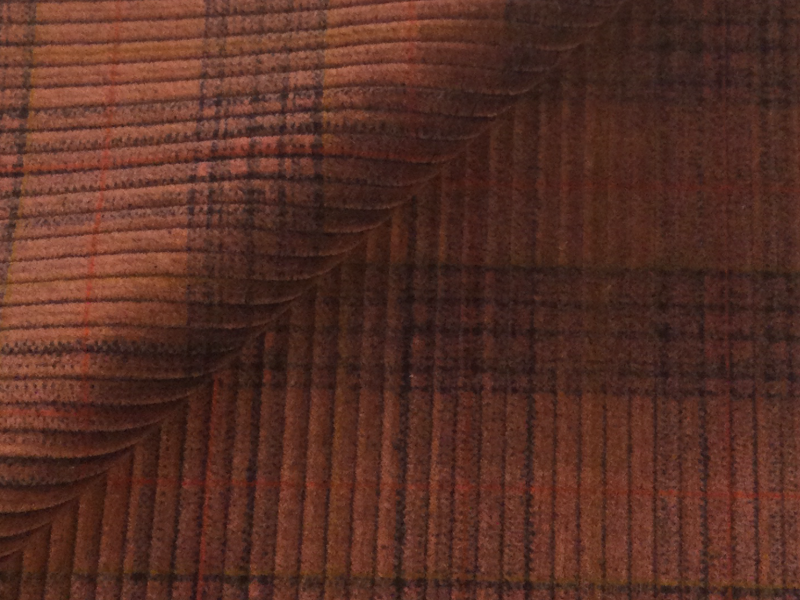 Made in Italy Wide Wale Printed Plaid Corduroy In Garnet Red