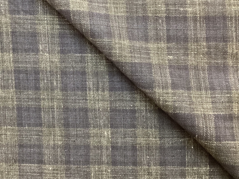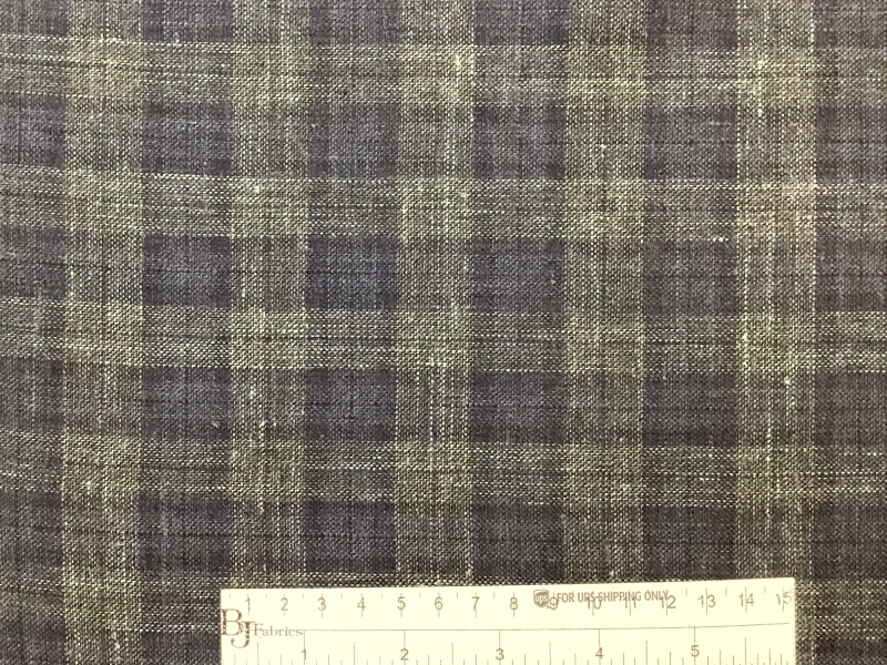 Made in Italy Wool/Silk/Linen Plaid In Navy & Grey