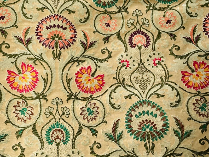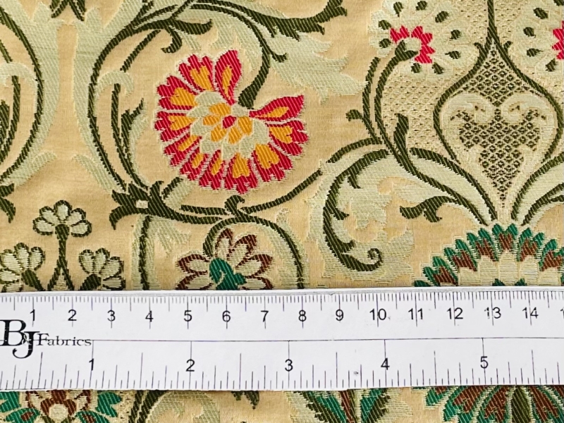 Metallic Brocade in Champagne Ground with Gold Multi-Color Floral