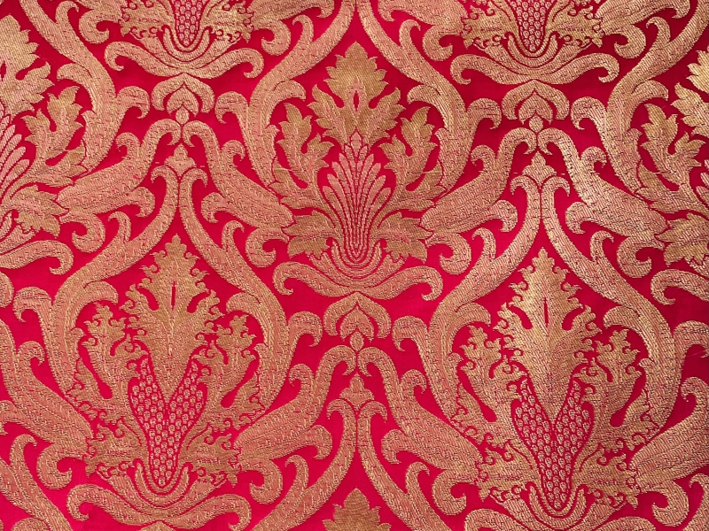 Metallic Brocade in Fuchsia and Gold Baroque Design