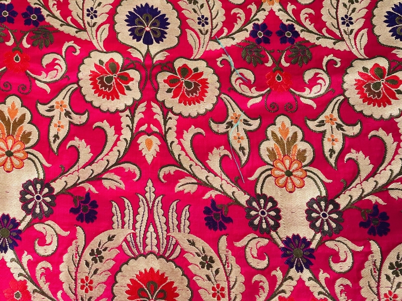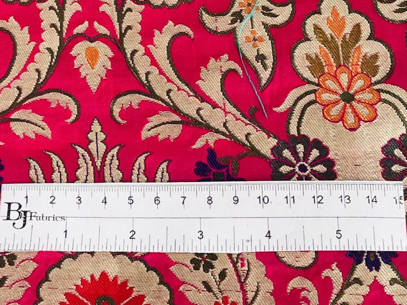 Metallic Brocade in Fuchsia Ground with Multi-Colored Gold Metallic Floral