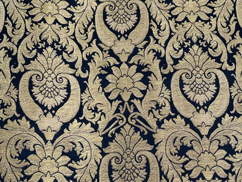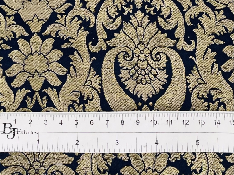 Metallic Brocade in Navy and Gold Baroque Design