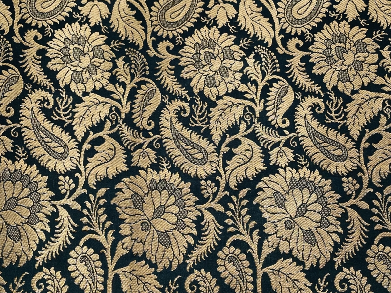Metallic Brocade in Navy and Gold Floral/Paisley