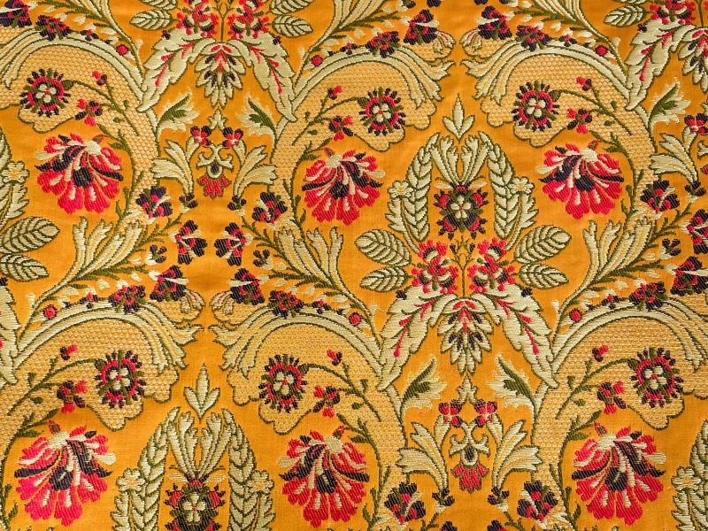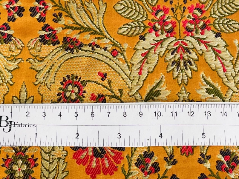 Metallic Brocade in BOrange Ground with Multi-Colored Gold Metallic Floral
