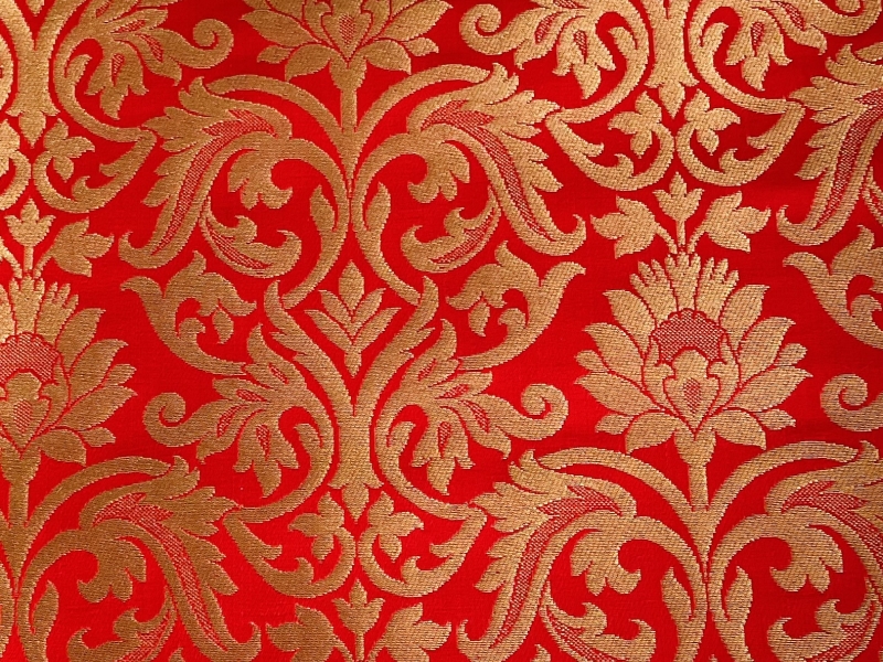 Metallic Brocade in Red and Gold Floral