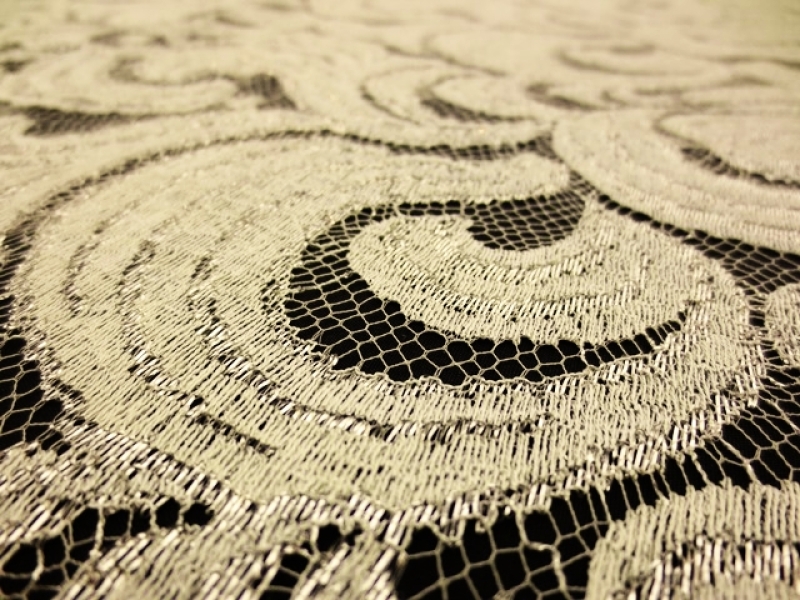 Silver and grey metallic Chantilly Lace, Made in France, MC171/1018.