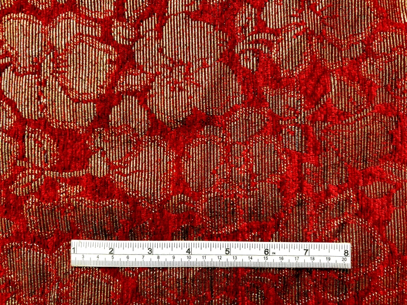 Metallic Chenille Brocade in Burgundy Gold