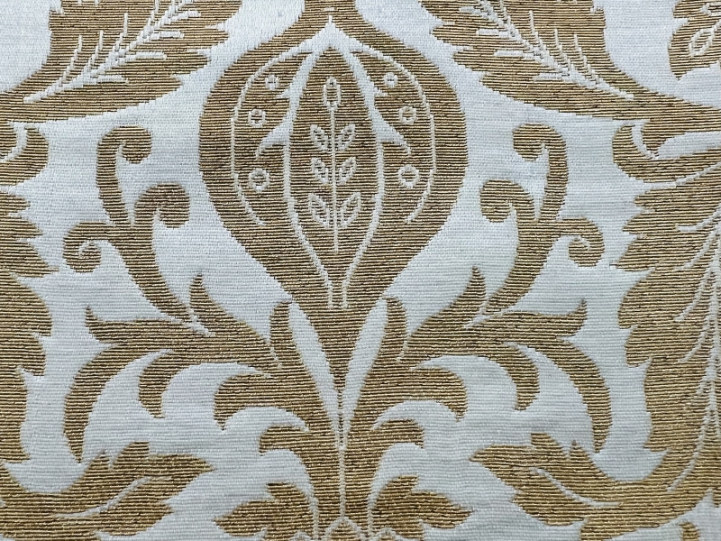 Metallic Large Floral Brocade in White Gold