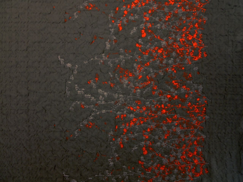 NOTE: This fabric is SOLD BY THE PANEL, NOT BY THE YARD(when ordering, "1 Yard" = 1 panel). This metallic silk blend lamé organza cloqué panel measures approximately 56"x53" (142x135 cm). NO SAMPLES will be cut from this piece.