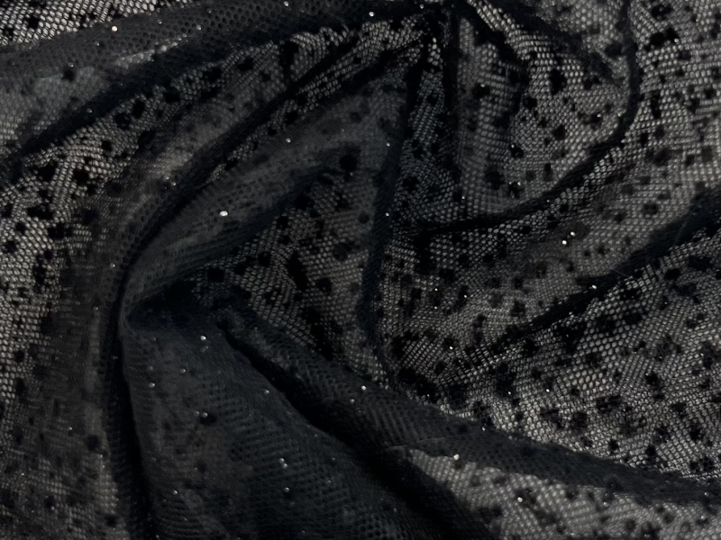 Micro Flocked & Glittered Nylon Tulle in Black on Black