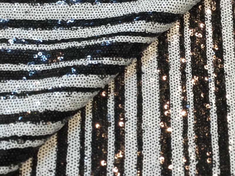 MINI SEQUINS<br>on STRETCH TULLE<br>in BLACK/WHITE STRIPES