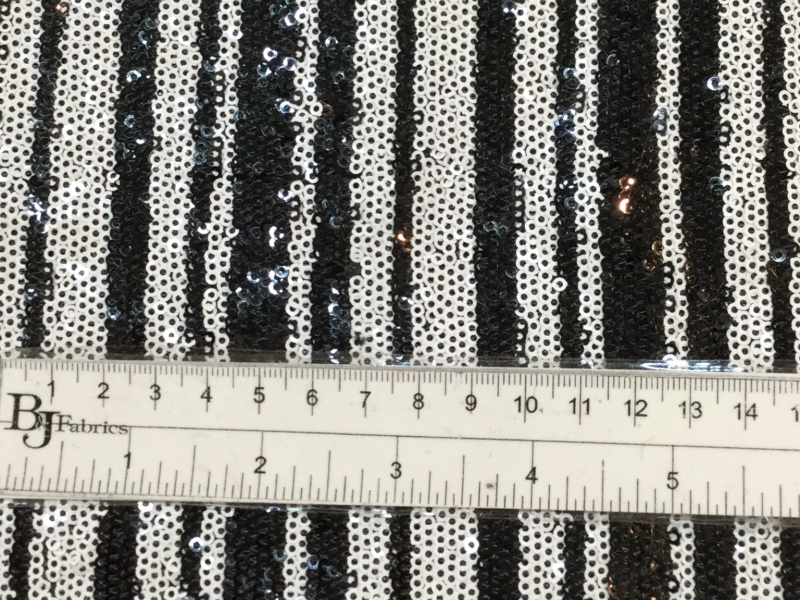 Mini Sequins on Stretch Tulle in Black and White Stripes