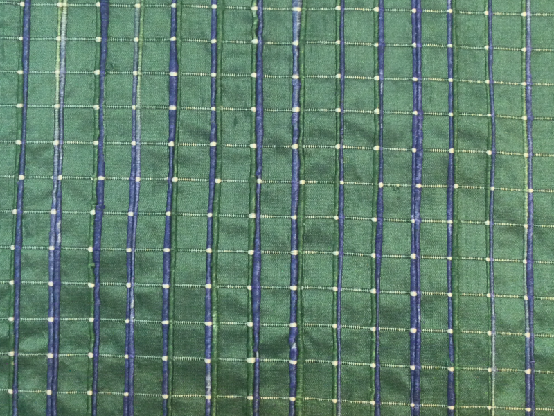Novelty Raw Silk Shantung Plaid in Green and Blue