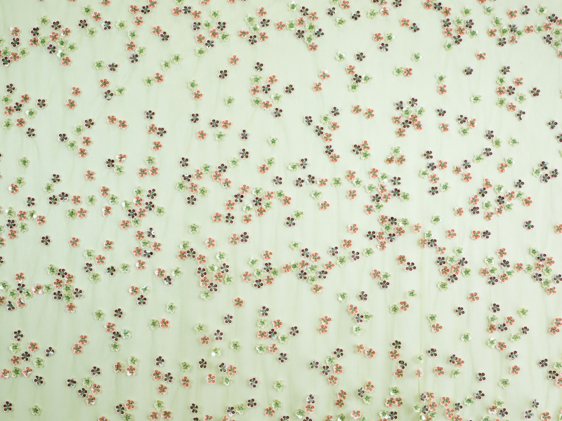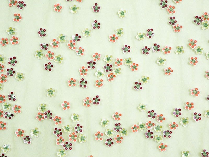 Custom Made Novelty Sequined Flowers on Acid Green Tulle