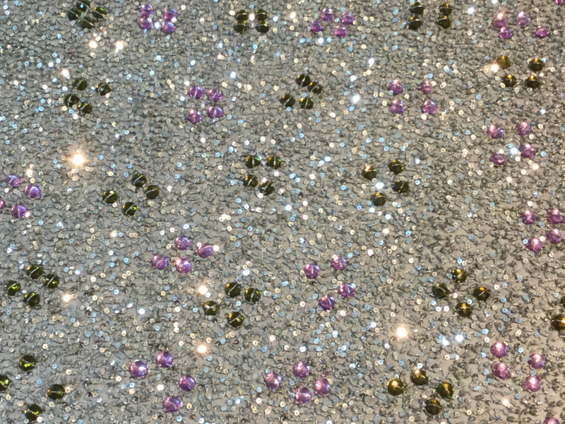 Novelty Sequins and Crystals on Tulle in Olive and Pink