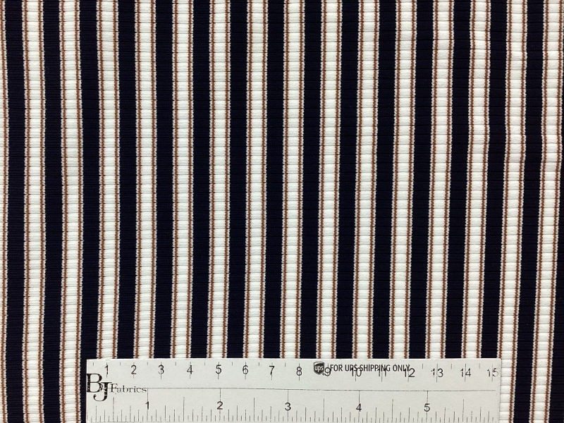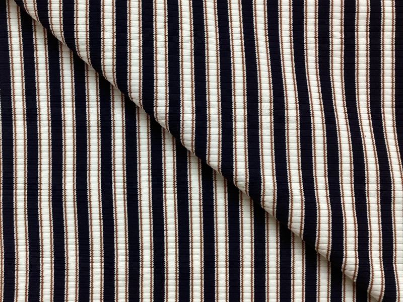 Nylon & Lycra Stripe Knit In Black, Diamond White & Copper
