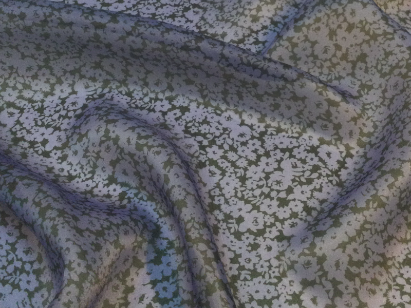Nylon Satin Organza Floral Print Violet on Black