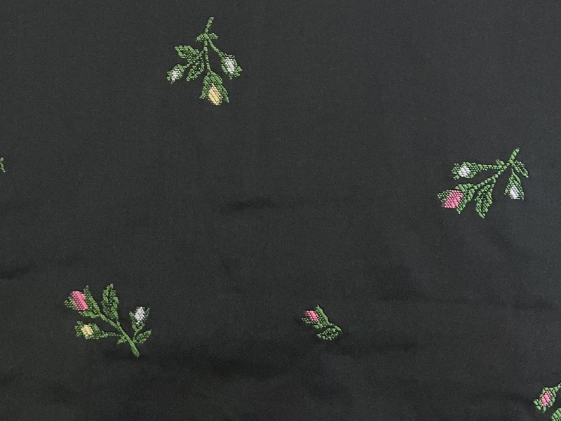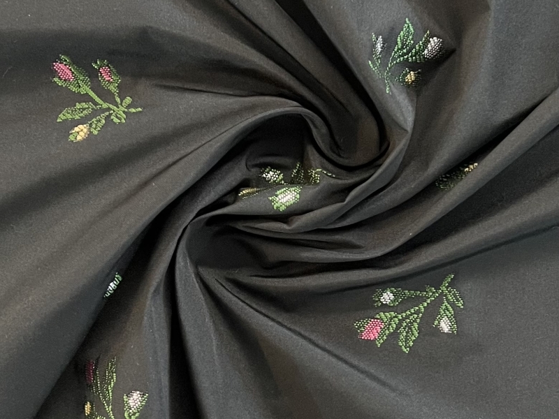 Polyester Jacquard Taffeta in Black with Rosebud