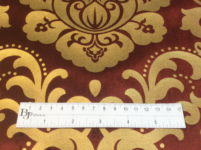 PRESS PRINTED<br>COTTON VELVET<br>in BURGUNDY W/ GOLD