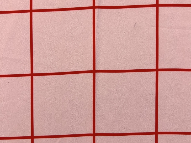 PRINTED POLYESTER<BR>RED & PINK WINDOWPANE<BR>PINK & RED