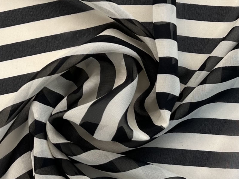 PRINTED SILK CHIFFON<BR>IN BLACK & WHITE<BR>STRIPES