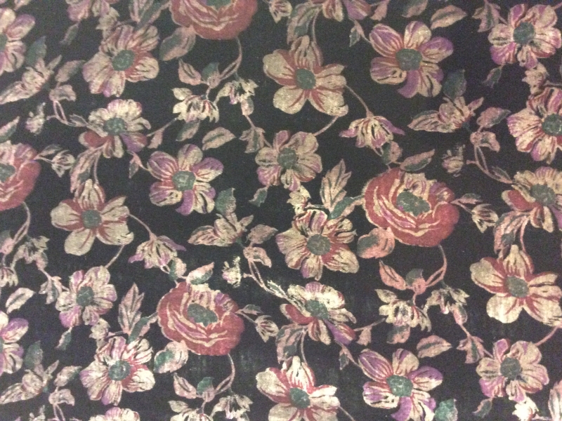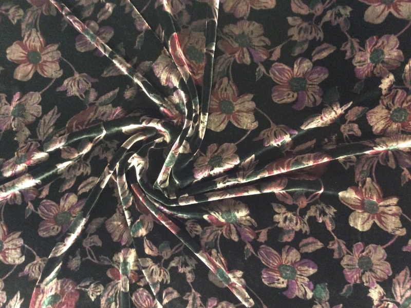 Printed Silk Rayon Velvet in Black/Rose