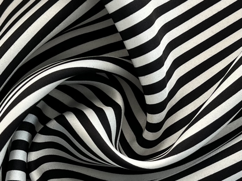 PRINTED SILK TWILL<BR>DIAGONAL BLACK & WHITE<BR>STRIPE