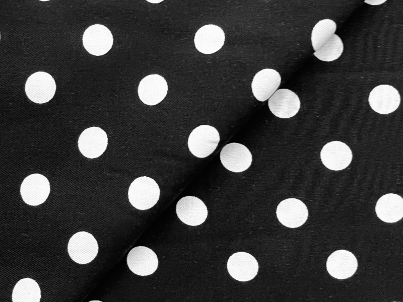Printed Viscose Challis in Black & White 1/2" Dots