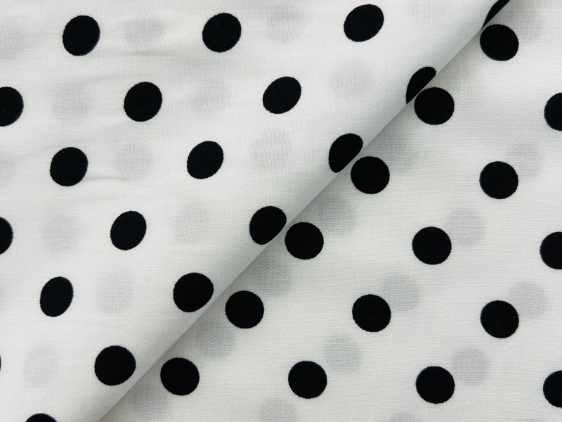 Printed Viscose Challis in Black & White 1/2" Dots