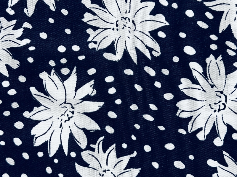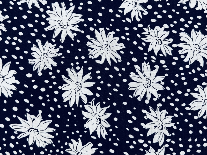 Printed Viscose Challis in Navy & White