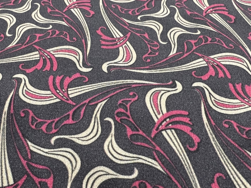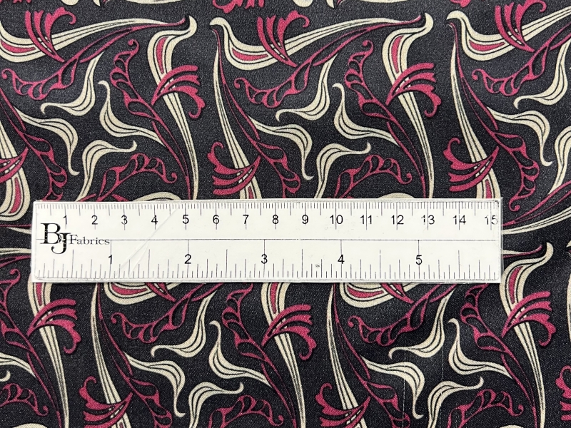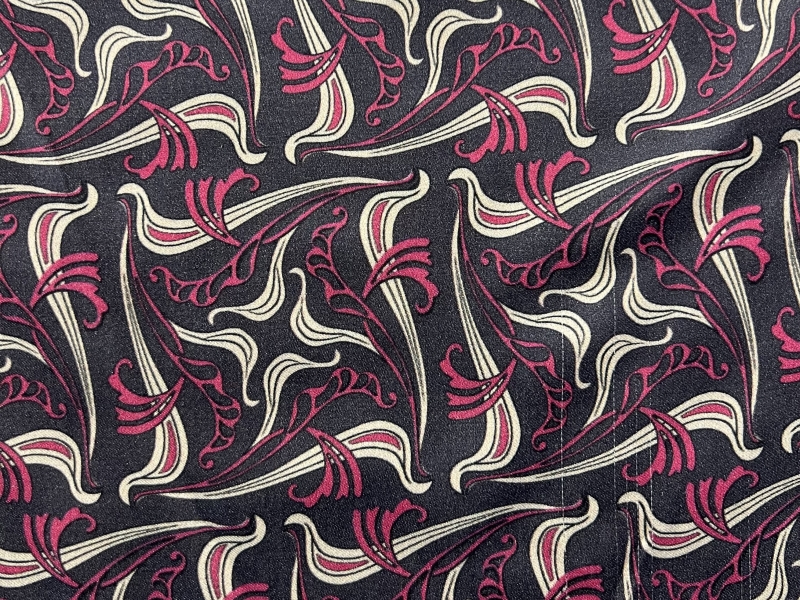 Printed Viscose challis Sateen On Charcoal Ground