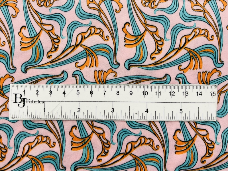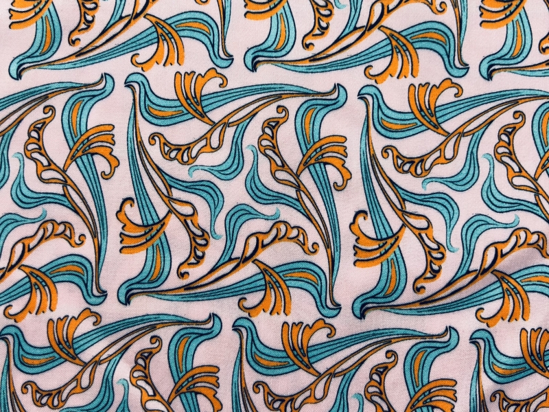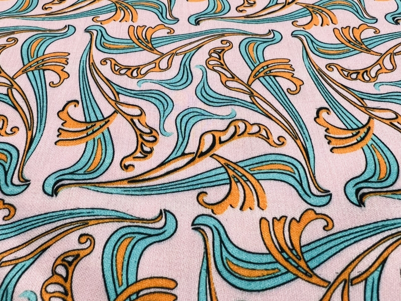 Printed Viscose challis Sateen On Pink Ground
