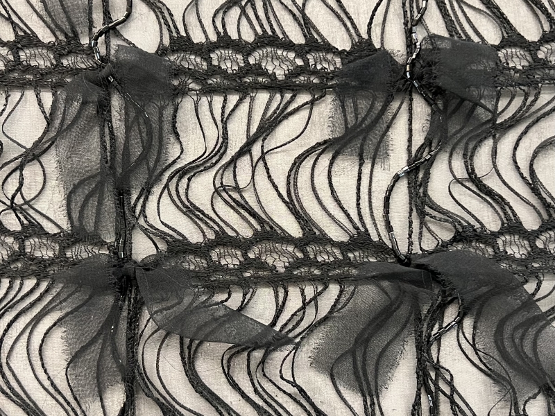 Pure Silk Chiffon Base & Bugle Beads with Lace and Silk Chiffon Knots