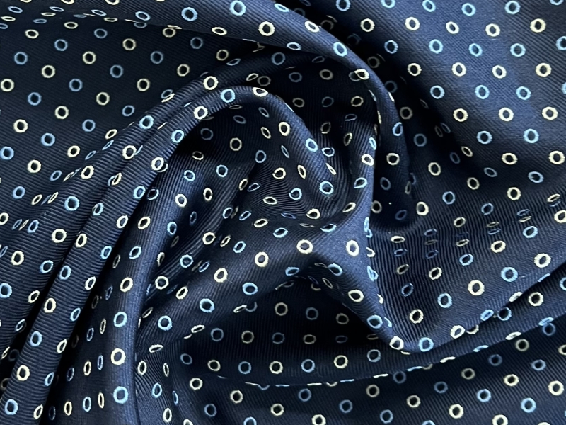 Pure Silk Tie Brocade "Bubbles" in Navy