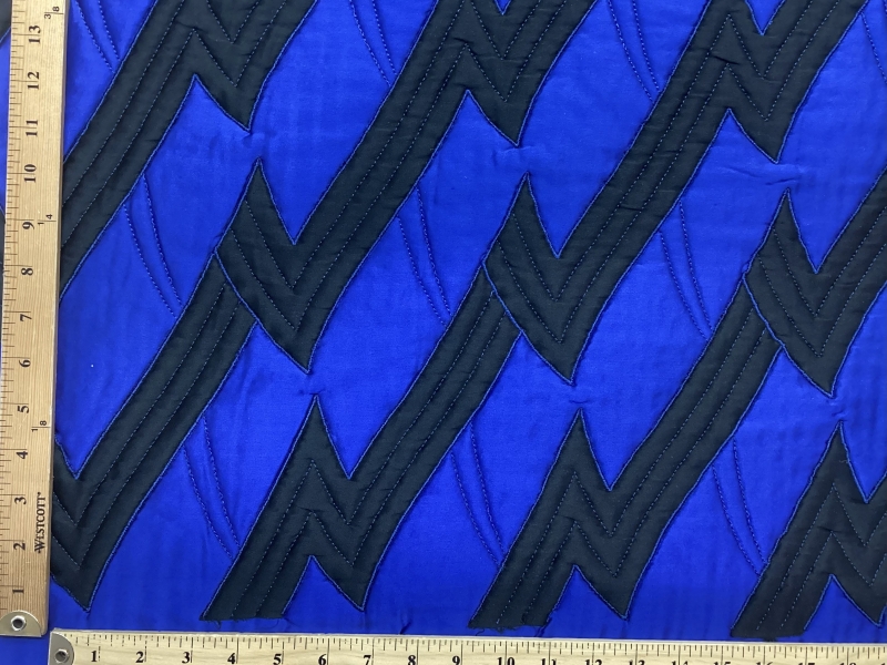 Quilted Silk Charmeuse in Zig Zag Pattern royal & Black