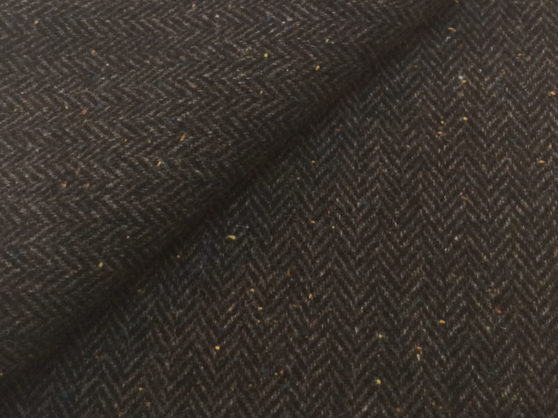 FABRIC IN WAREHOUSE/HERRINGBONE HARRIS TWEED/RED + COCOA + RED DOTS