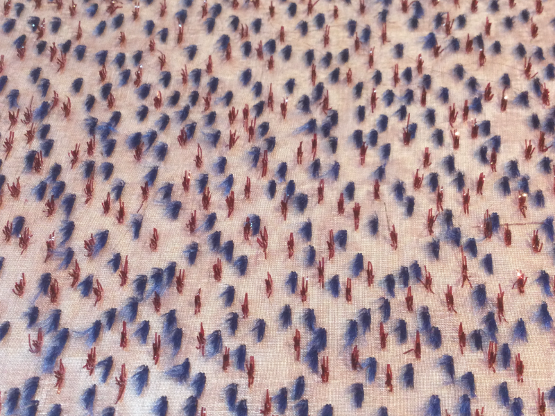 SILK/LUREX BURNOUT<br>VELVET in<br>BURGUNDY w/ BLUE