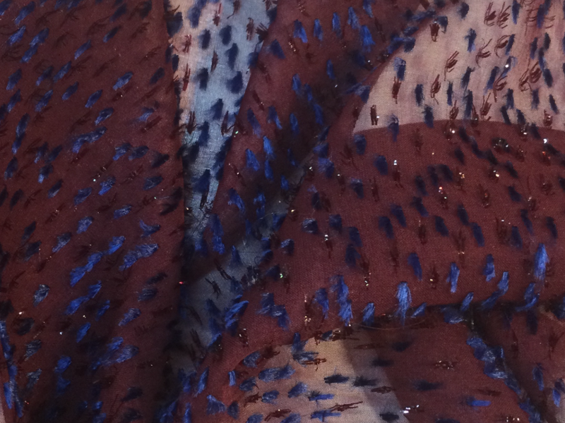 Silk and Lurex Burnout Velvet in Burgundy with Blue