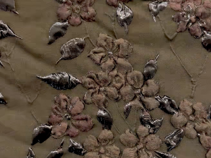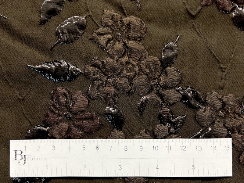 Silk Blend Metallic Brocade in Brown